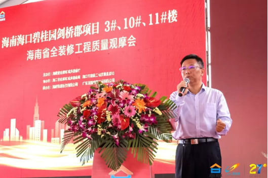 碧桂園海南區(qū)域??诔鞘泄緢?zhí)行總裁何曉鐳深入分析了推行全裝修的必要性,全面介紹了全裝修五大導(dǎo)向,并以“兩提”“兩降”為著力點(diǎn),通過與傳統(tǒng)工藝數(shù)據(jù)進(jìn)行對比分析,全面展現(xiàn)了全裝修管理的優(yōu)勢。