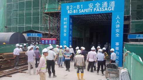在安全通道處,參觀人員對(duì)國(guó)內(nèi)安全文明施工和CI標(biāo)準(zhǔn)化在馬來(lái)西亞實(shí)施感到非常認(rèn)同,金海灣plot1ABC安全文明施工標(biāo)識(shí)大部分采用中英文結(jié)合,體現(xiàn)出中馬文化的融合。