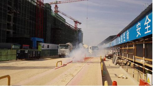 在鞭炮聲中,第一罐混凝土攪拌車進(jìn)場(chǎng)澆筑
