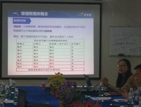 在提升員工“營改增”稅務(wù)認(rèn)識(shí)上,公司財(cái)務(wù)資金部先后前往云貴、莞惠、江蘇等多個(gè)分公司/區(qū)域進(jìn)行授課。為了進(jìn)一步提升員工對(duì)“營改增”稅制改革的理解和認(rèn)識(shí),公司財(cái)務(wù)負(fù)責(zé)人梁蘊(yùn)濤將“營改增”具體分為兩大類,即基本概念篇和實(shí)務(wù)操作篇方便大家理解。從增值稅的相關(guān)概念,到新老項(xiàng)目的劃分,再到應(yīng)對(duì)措施及經(jīng)營的風(fēng)險(xiǎn)提示·····每一項(xiàng)的講解重點(diǎn)直指項(xiàng)目管理。