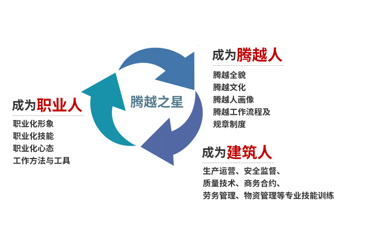 優(yōu)秀人才是企業(yè)可持續(xù)發(fā)展的源動力,是不可或缺的戰(zhàn)略性資源。為實現企業(yè)可持續(xù)經營發(fā)展和打造企業(yè)核心競爭力,廣東騰越建筑工程有限公司全力打造學習型企業(yè),利用現代人力資源開發(fā)技術,根據企業(yè)戰(zhàn)略要求而不斷設計研發(fā)出新型培訓及人才發(fā)展項目,建立了完善的人才培養(yǎng)與發(fā)展體系,搭建科學規(guī)范的人才梯隊。主要包括項目總經理培訓班、經理人培訓班、新員工入職培訓(含騰越之星入職培訓)及領導力發(fā)展計劃(青苗計劃、秀干計劃、嘉木計劃、棟梁計劃)等豐富完善的培訓發(fā)展項目,為公司的發(fā)展提供復合型人才。